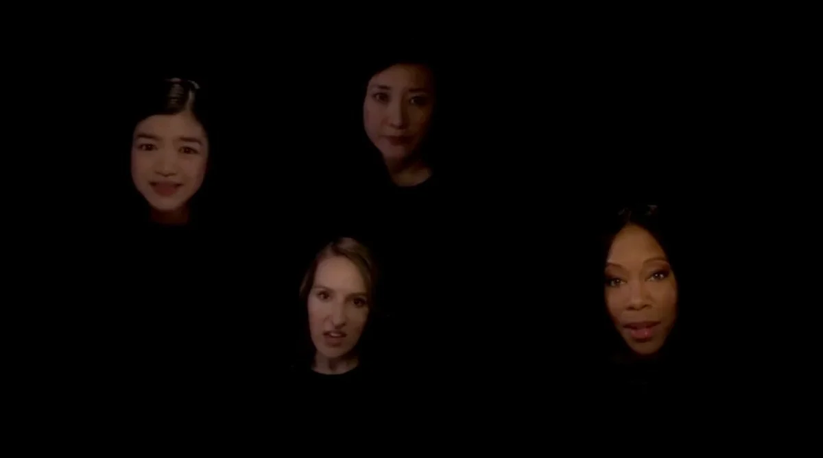 Amy’s float is, based on our previous examples, what you’d expect: she is conjured into a head-space where realistic versions of people in her life are all criticizing her, telling her that she’s a failure. And of course they’re shown as disembodied heads on an all black background.